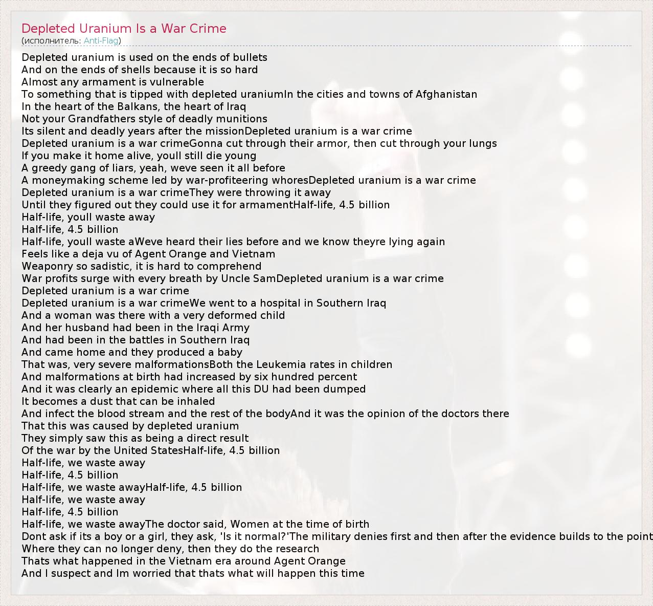 ГлавнаяИсполнителиAnti-FlagDepleted Uranium Is a War Crime