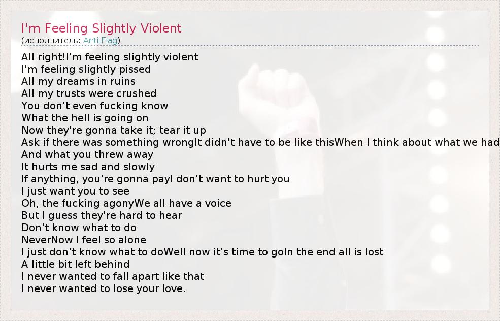 А как ты думаешь, о чем песня "I'm Feeling Slightly Violent" ?