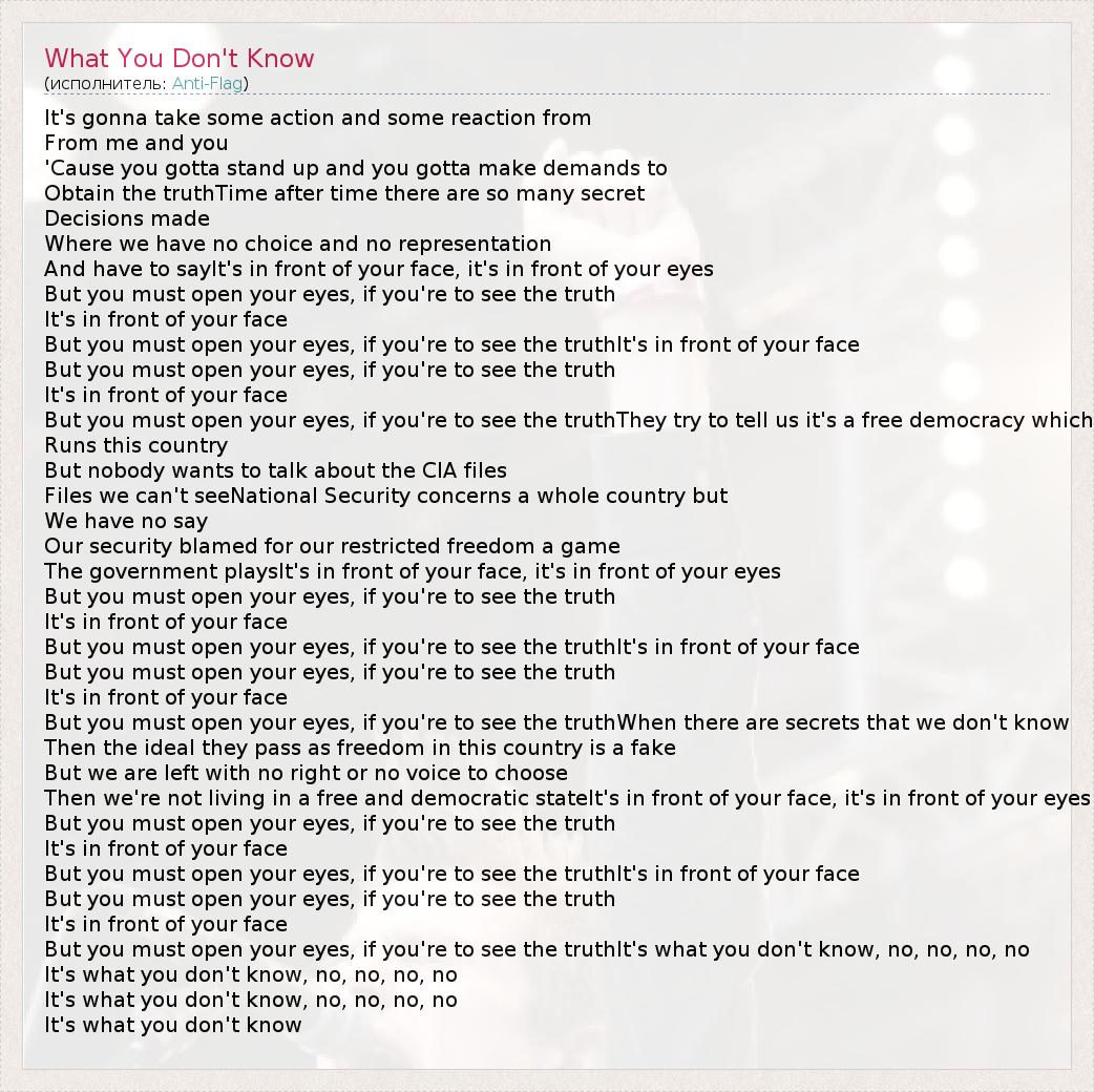 А как ты думаешь, о чем песня "What You Don't Know" ?