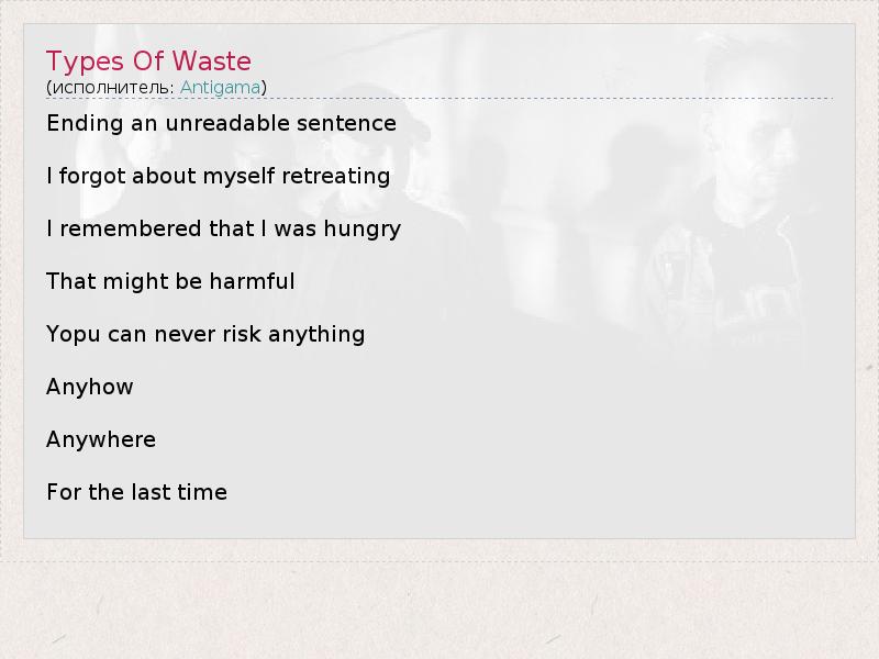А как ты думаешь, о чем песня "Types Of Waste" ?