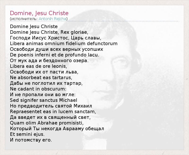 А как ты думаешь, о чем песня "Domine, Jesu Christe" ?
