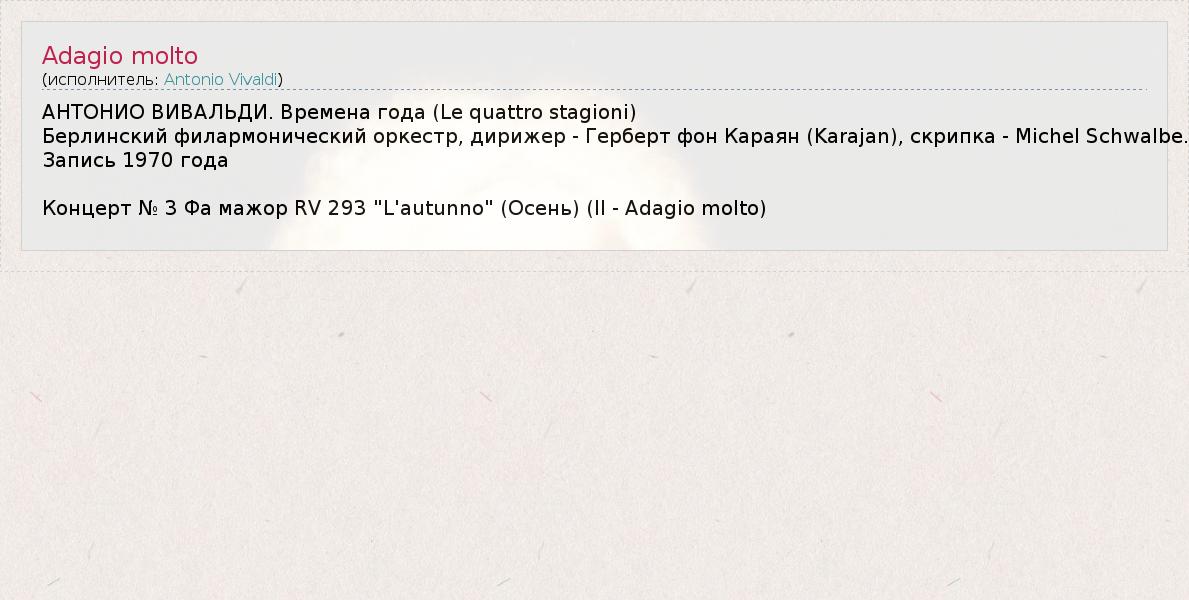 Концерт № 3 Фа мажор RV 293 "L'autunno" (Осень) (II - Adagio molto)