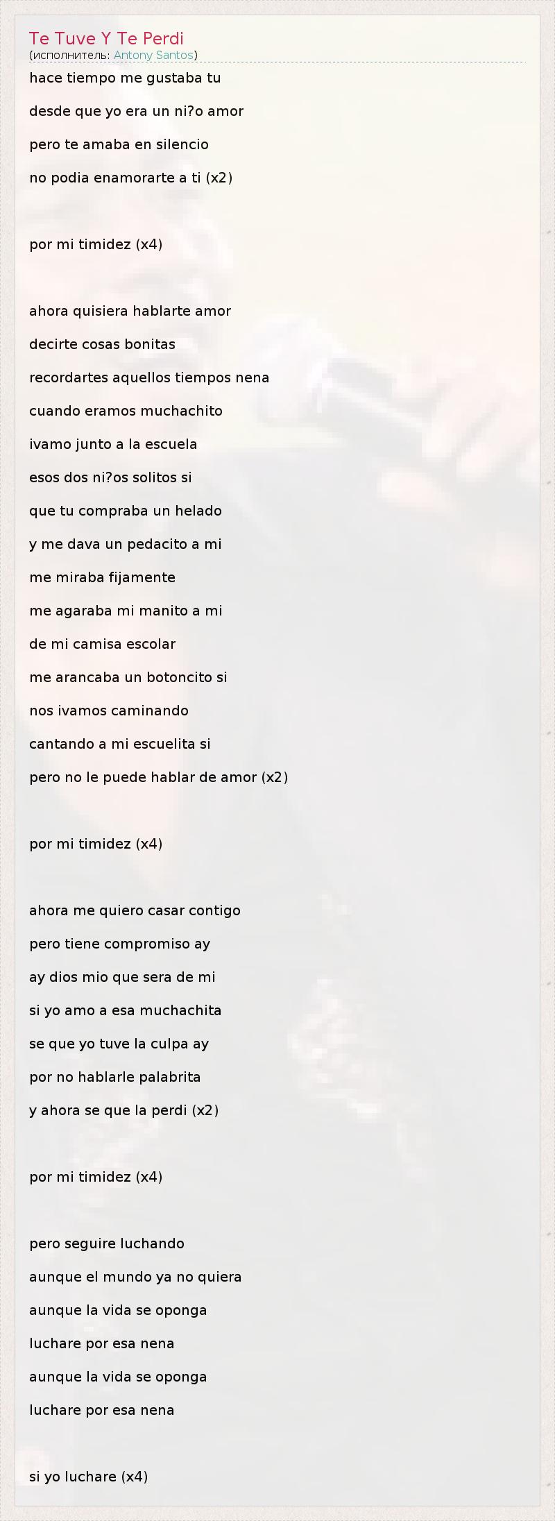 А как ты думаешь, о чем песня "Te Tuve Y Te Perdi" ?