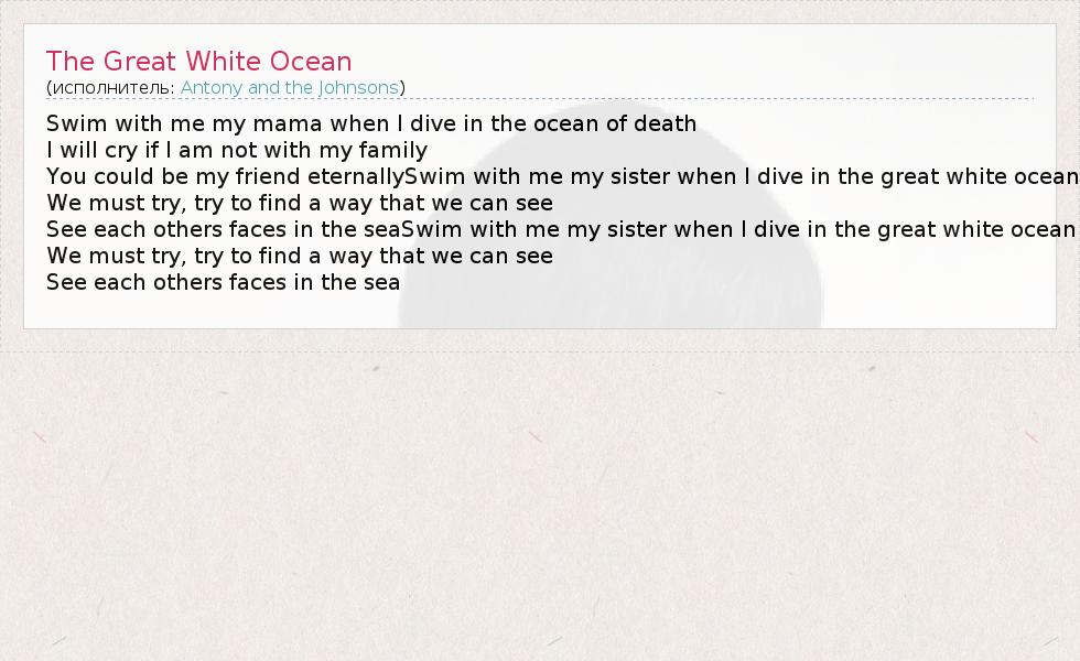 А как ты думаешь, о чем песня "The Great White Ocean" ?