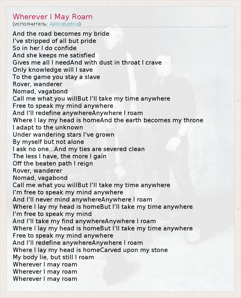 А как ты думаешь, о чем песня "Wherever I May Roam" ?