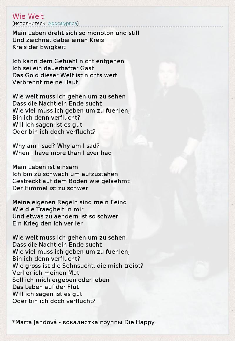 А как ты думаешь, о чем песня "Wie Weit" ?