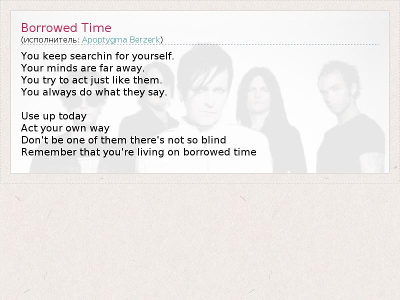 А как ты думаешь, о чем песня "Borrowed Time" ?
