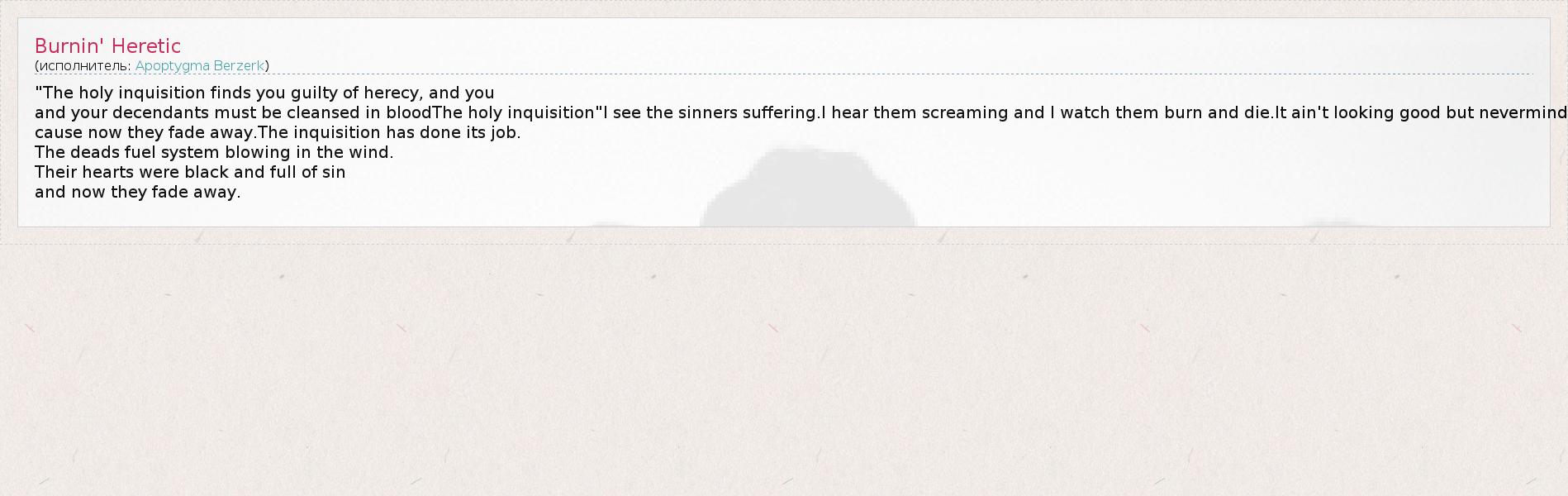 А как ты думаешь, о чем песня "Burnin' Heretic" ?