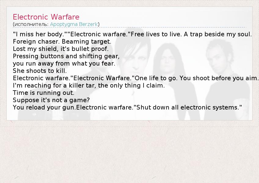 А как ты думаешь, о чем песня "Electronic Warfare" ?