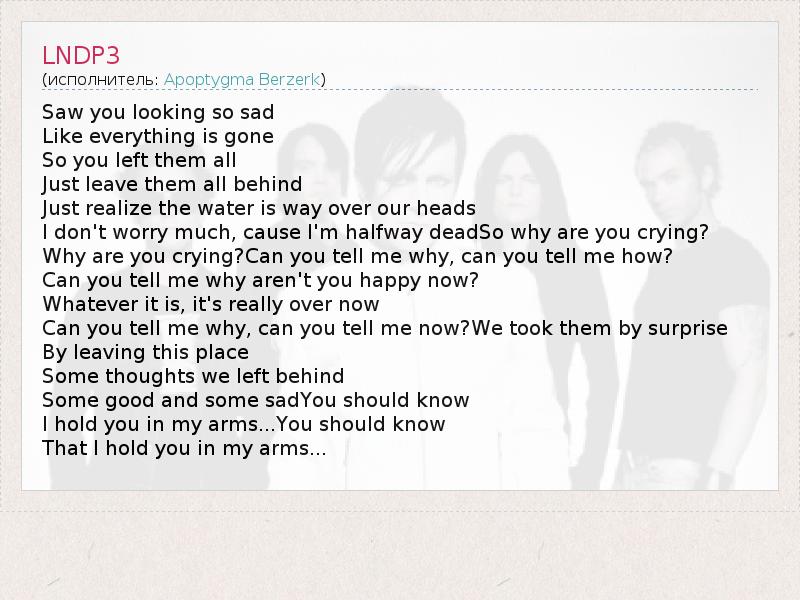 I don't worry much, cause I'm halfway deadSo why are you crying?