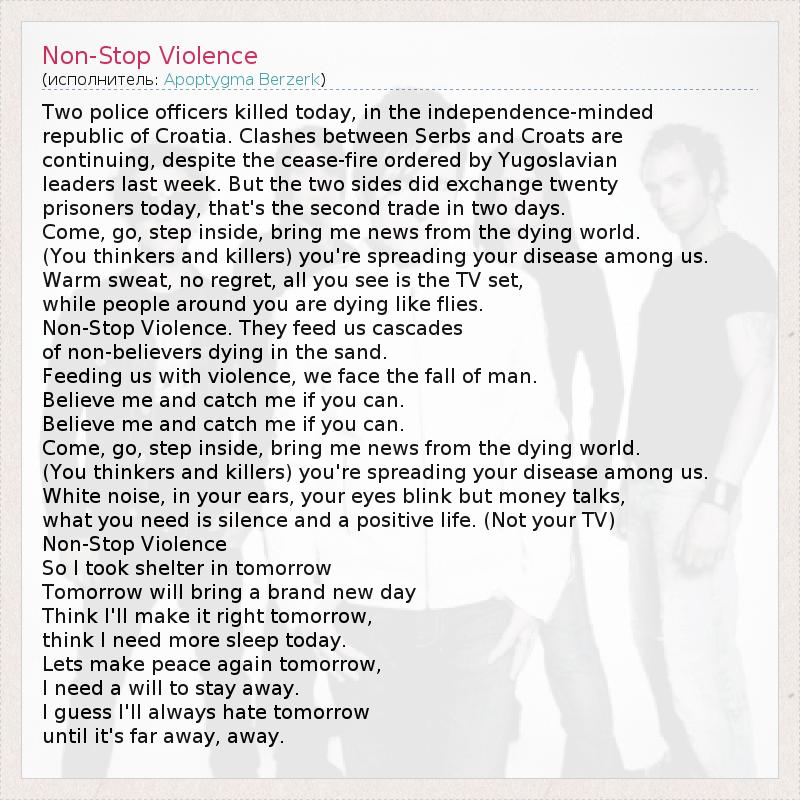 А как ты думаешь, о чем песня "Non-Stop Violence" ?