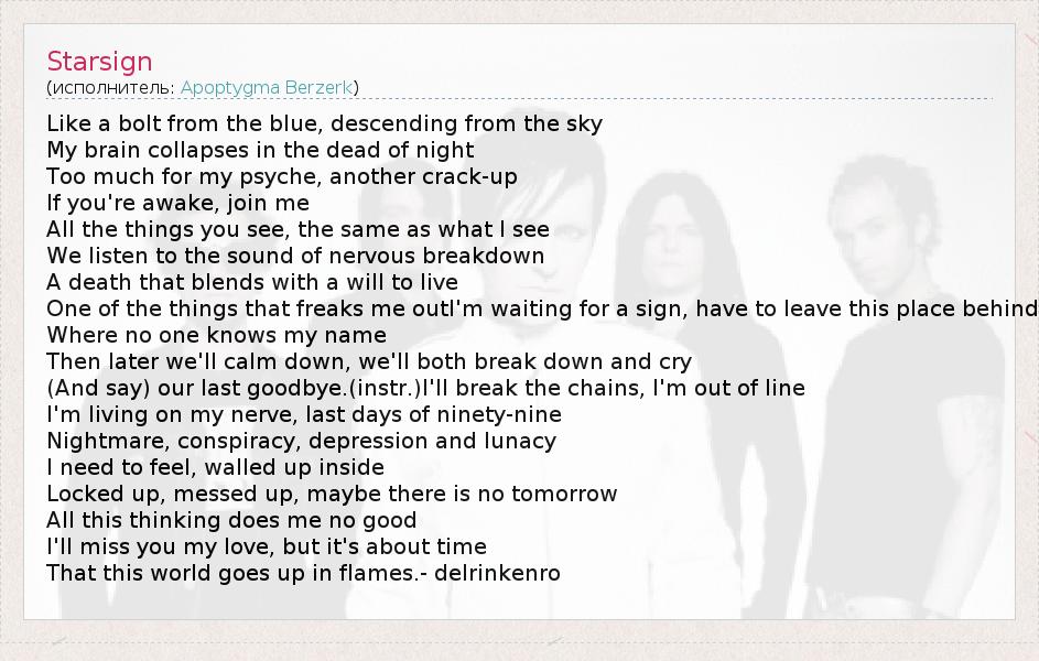 А как ты думаешь, о чем песня "Starsign" ?
