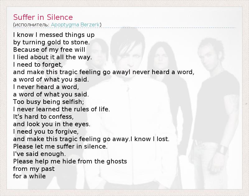 А как ты думаешь, о чем песня "Suffer in Silence" ?