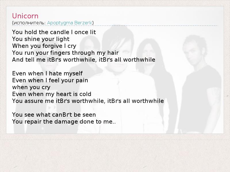 You hold the candle I once lit You shine your light When you forgive I cry You run your fingers through my hair And tell me itВґs worthwhile, itВґs all worthwhile Even when I hate myself Even when I feel your pain when you cry Even when my heart is cold You assure me itВґs worthwhile, itВґs all worthwhile You see what canВґt be seen You repair the damage done to me..