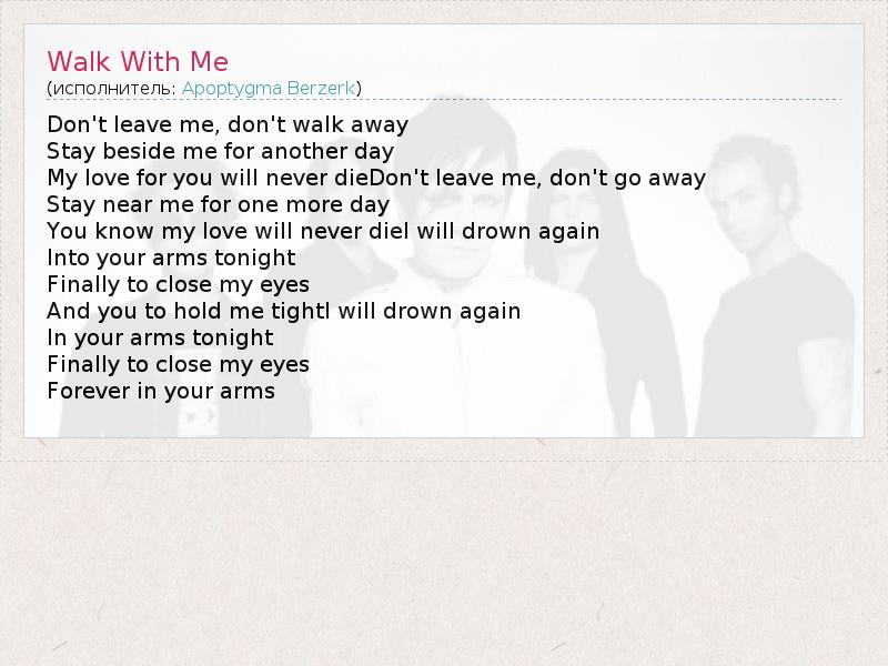 А как ты думаешь, о чем песня "Walk With Me" ?
