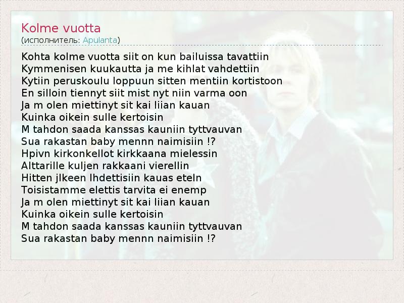 А как ты думаешь, о чем песня "Kolme vuotta" ?