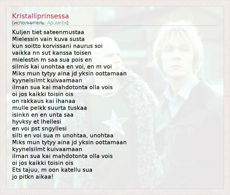 А как ты думаешь, о чем песня "Kristalliprinsessa" ?