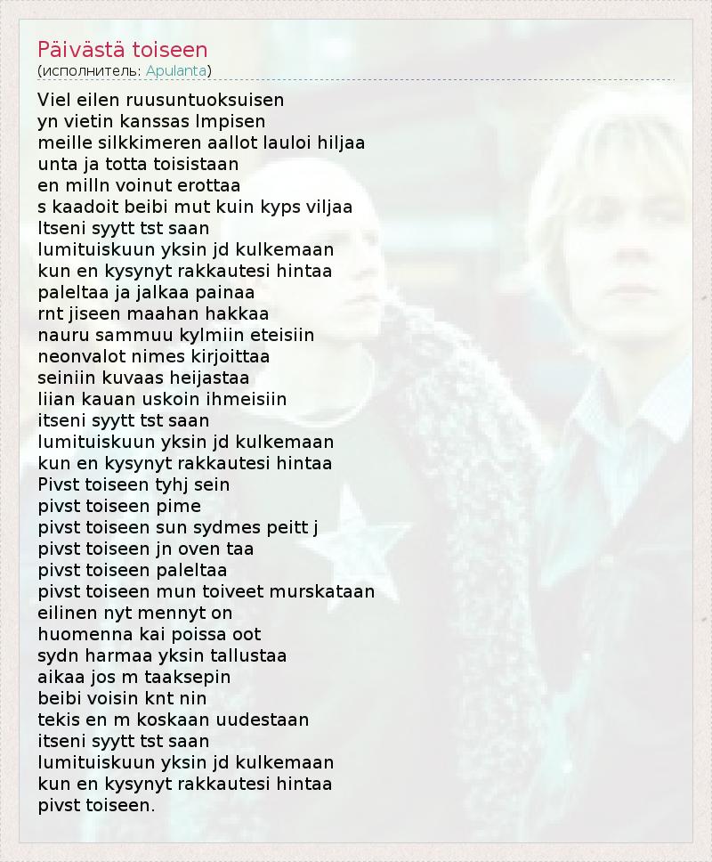 А как ты думаешь, о чем песня "Päivästä toiseen" ?