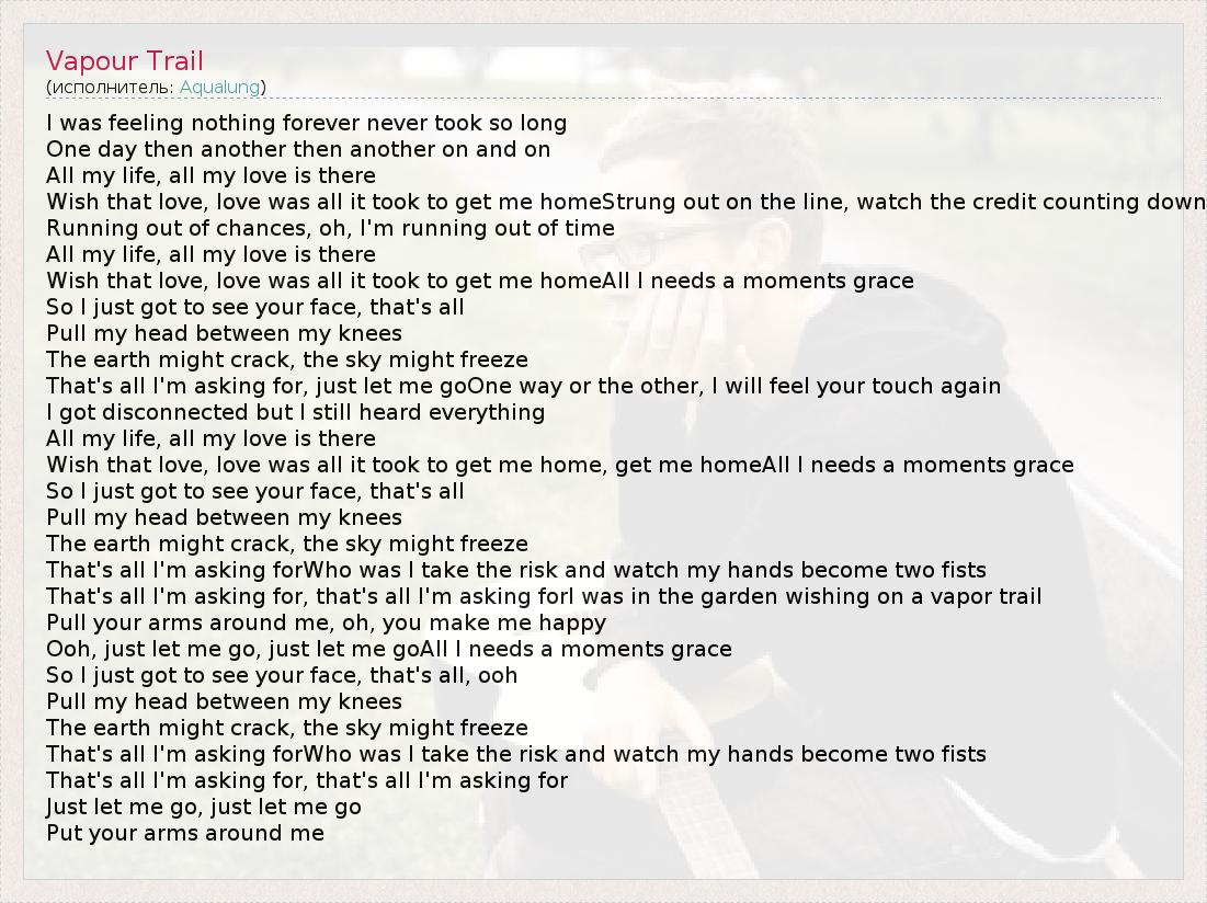 А как ты думаешь, о чем песня "Vapour Trail" ?