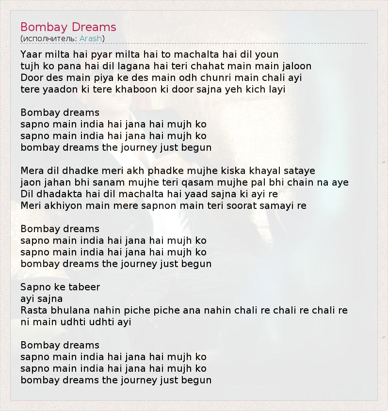 А как ты думаешь, о чем песня "Bombay Dreams" ?