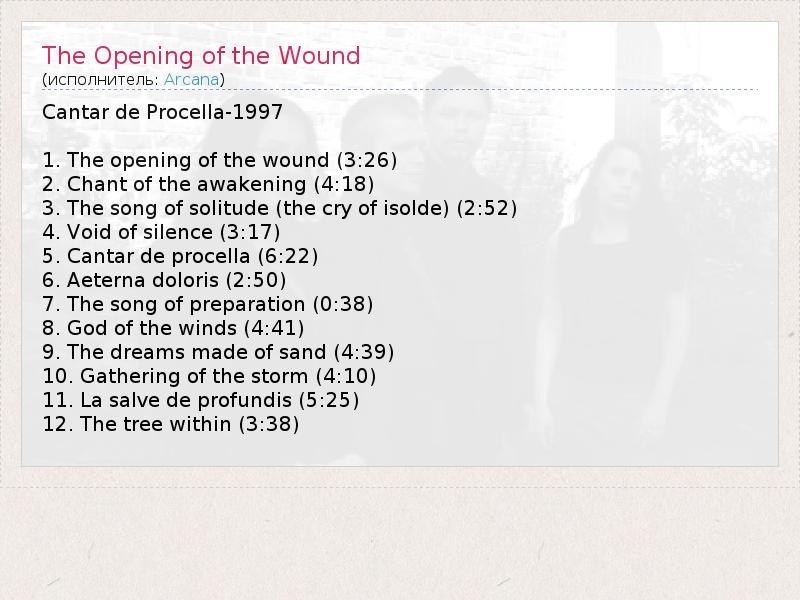 ГлавнаяИсполнителиArcanaThe Opening of the Wound