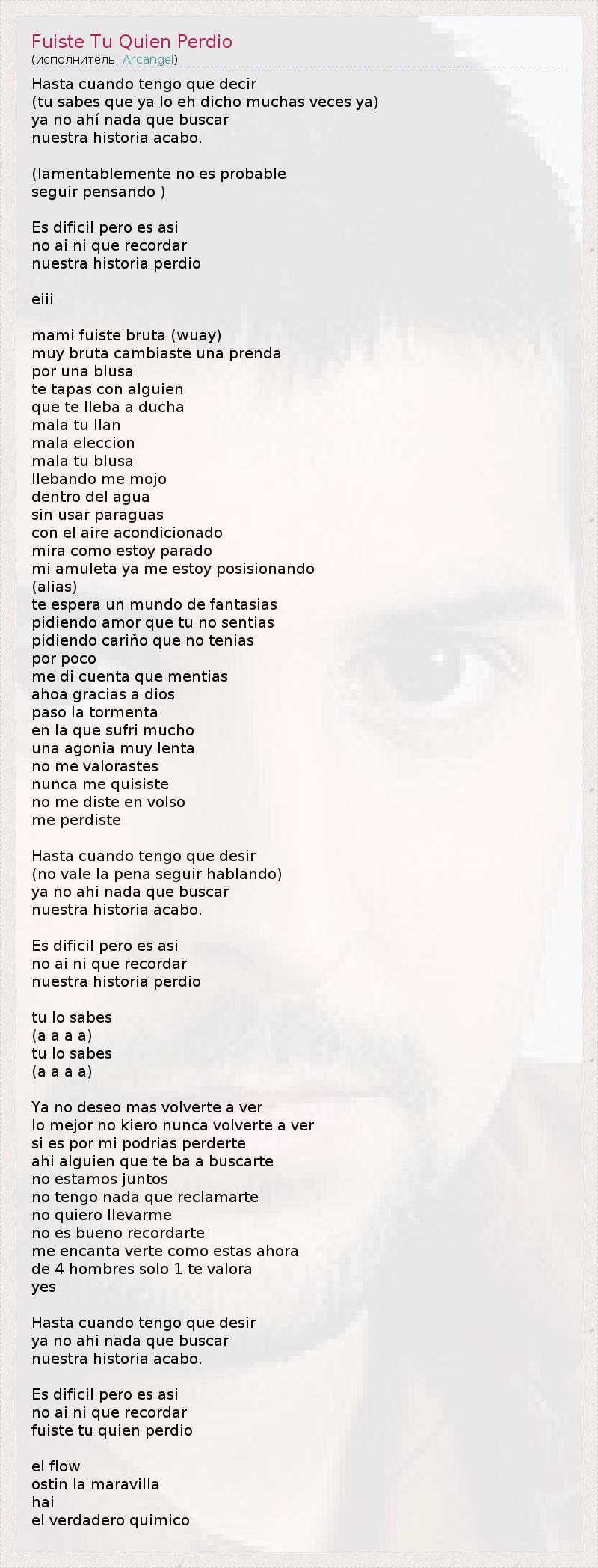 ГлавнаяИсполнителиArcangelFuiste Tu Quien Perdio
