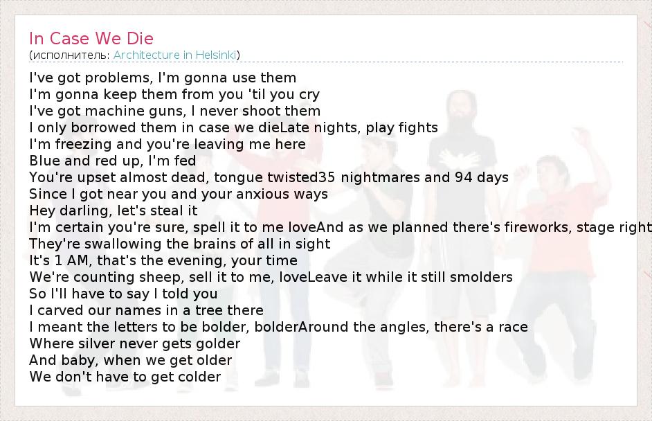 А как ты думаешь, о чем песня "In Case We Die" ?