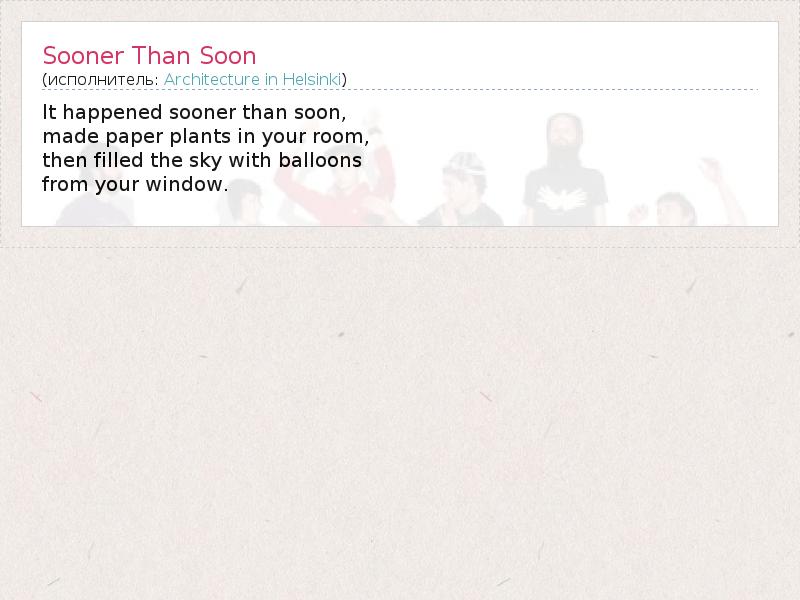 А как ты думаешь, о чем песня "Sooner Than Soon" ?