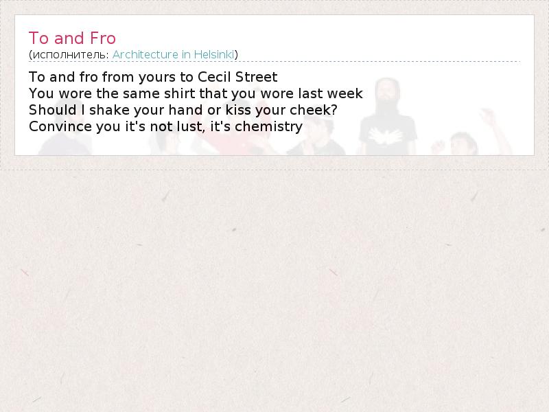 Это интересно:Австралийцы с тягой к финской архитектуре в названии и с впечатляющей непосредственностью в подходе к музыке. Восемь мельнбурцев делают indie-rock с залихватской удалью, примешивая туда без рецепта тьму инструментов.Как и в случае с первым альбомом Fingers Crossed пресса не может категоризировать музыку AIH – это не слишком рок (пусть... продолжение