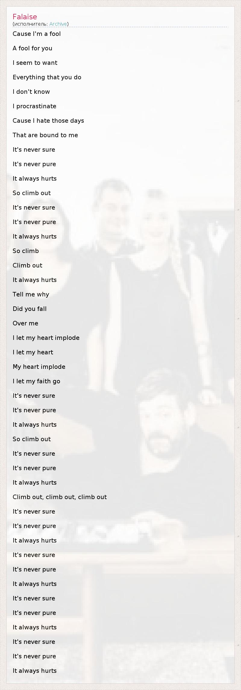 Это интересно:Archive — музыкальная группа из Лондона, сочетающая в своём творчестве элементы таких музыкальных жанров как трип-хоп, прогрессивный рок и альтернативный рок.Основатели Archive Дариус Килер (Darius Keeler) и Дэнни Гриффитс (Danny Griffiths) познакомились еще в 1990-м году, при работе над записью лондонского джангл проекта Genaside II. Оба были увлечены детройтским хаусом и техно и пробовали свои силы в создании... продолжение