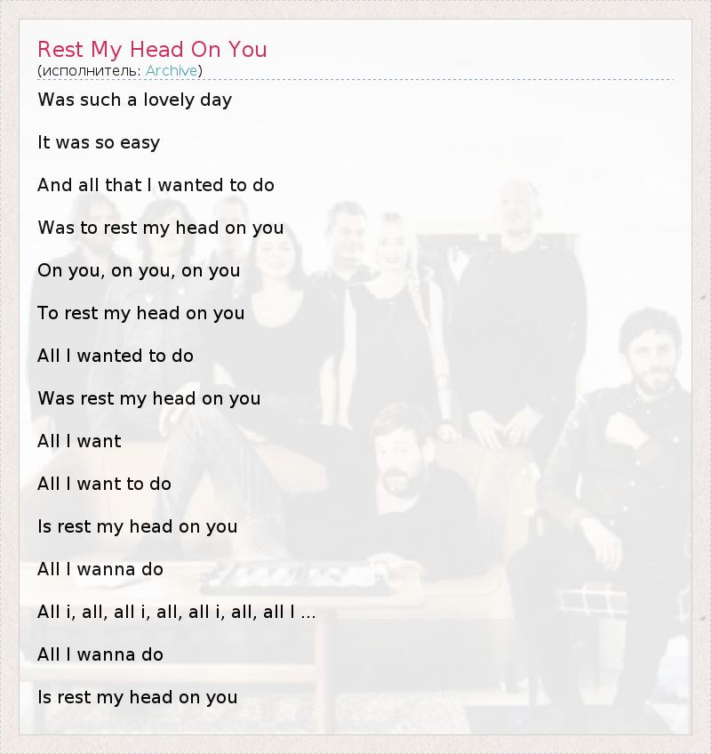 А как ты думаешь, о чем песня "Rest My Head On You" ?