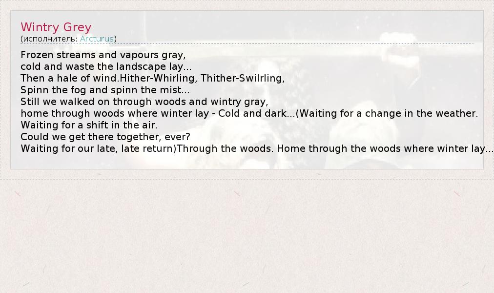 А как ты думаешь, о чем песня "Wintry Grey" ?