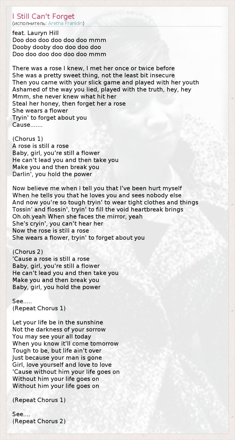 А как ты думаешь, о чем песня "I Still Can't Forget" ?