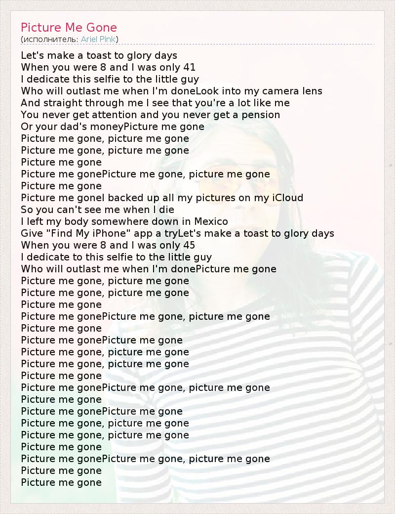 Picture me gonePicture me gone, picture me gone