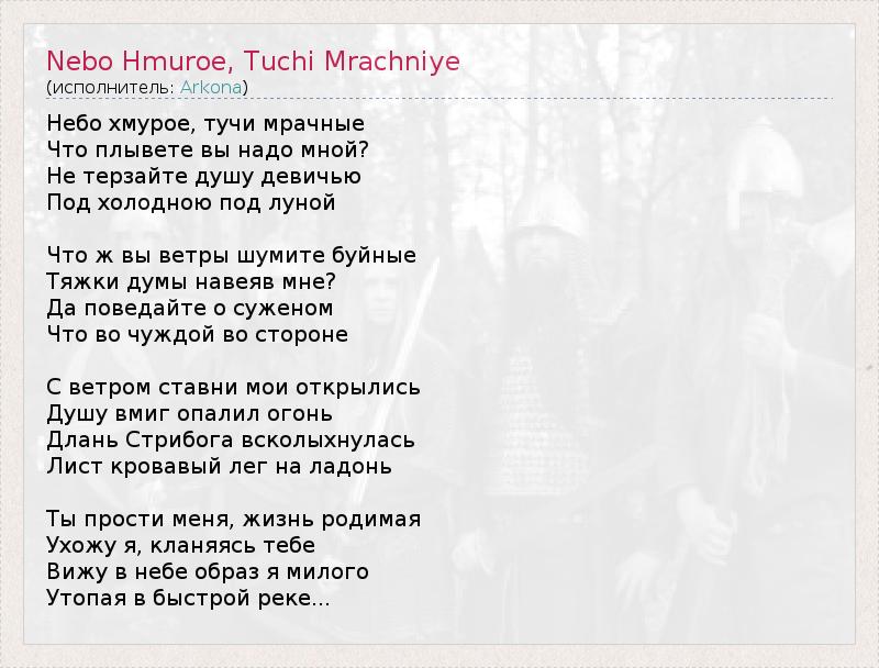 ГлавнаяИсполнителиArkonaNebo Hmuroe, Tuchi Mrachniye