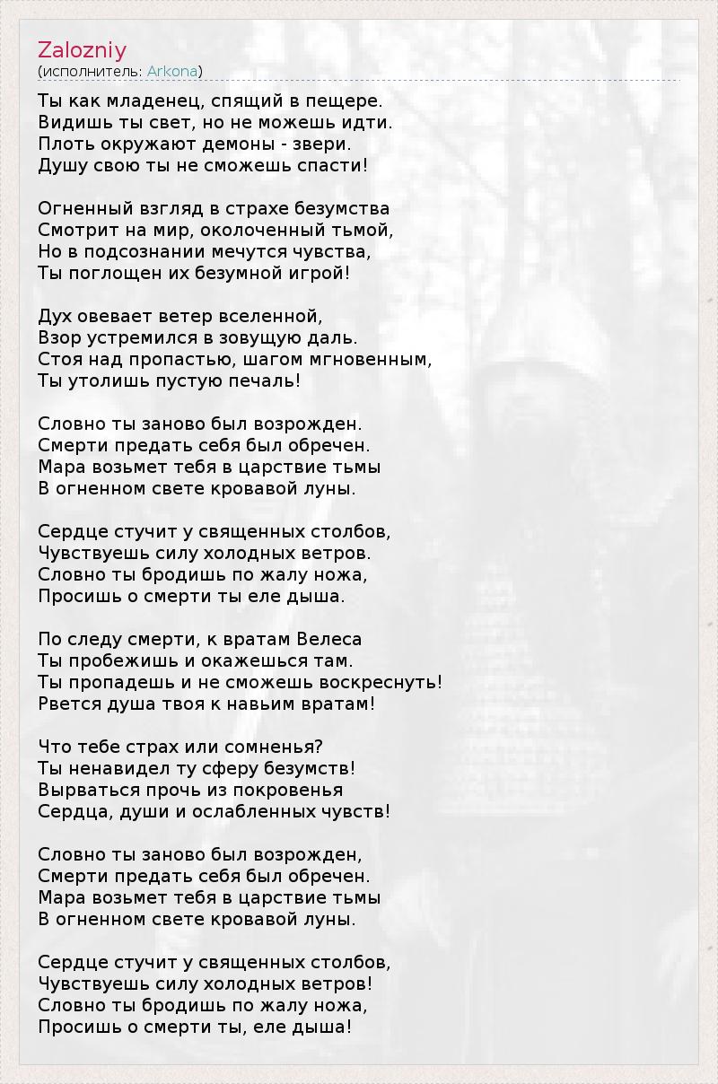 Аркона - Заложный http://megalyrics.ru/lyric/%D0%B0%D1%80%D0%BA%D0%BE%D0%BD%D0%B0/%D0%B7%D0%B0%D0%BB%D0%BE%D0%B6%D0%BD%D1%8B%D0%B9.htm#ixzz22xSJnZ7H