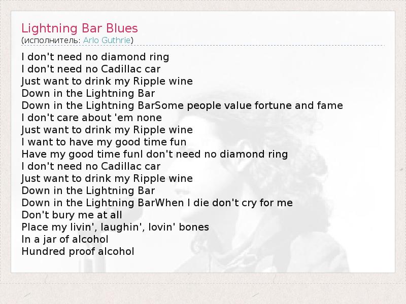 А как ты думаешь, о чем песня "Lightning Bar Blues" ?