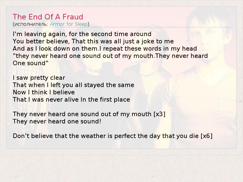 А как ты думаешь, о чем песня "The End Of A Fraud" ?