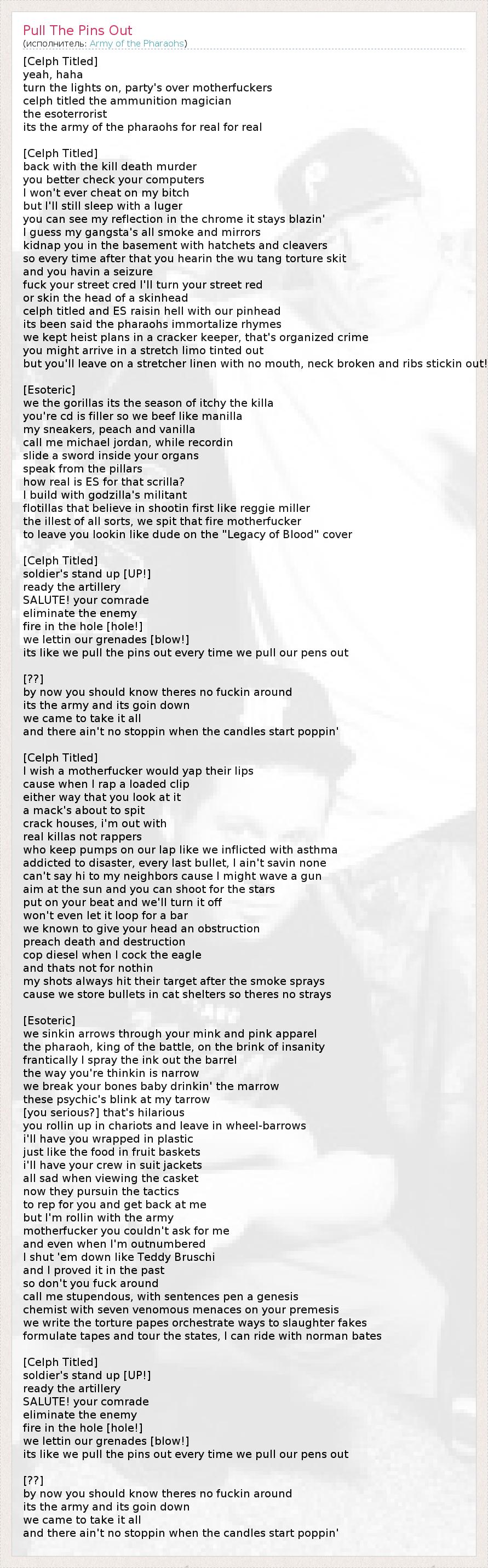 А как ты думаешь, о чем песня "Pull The Pins Out" ?