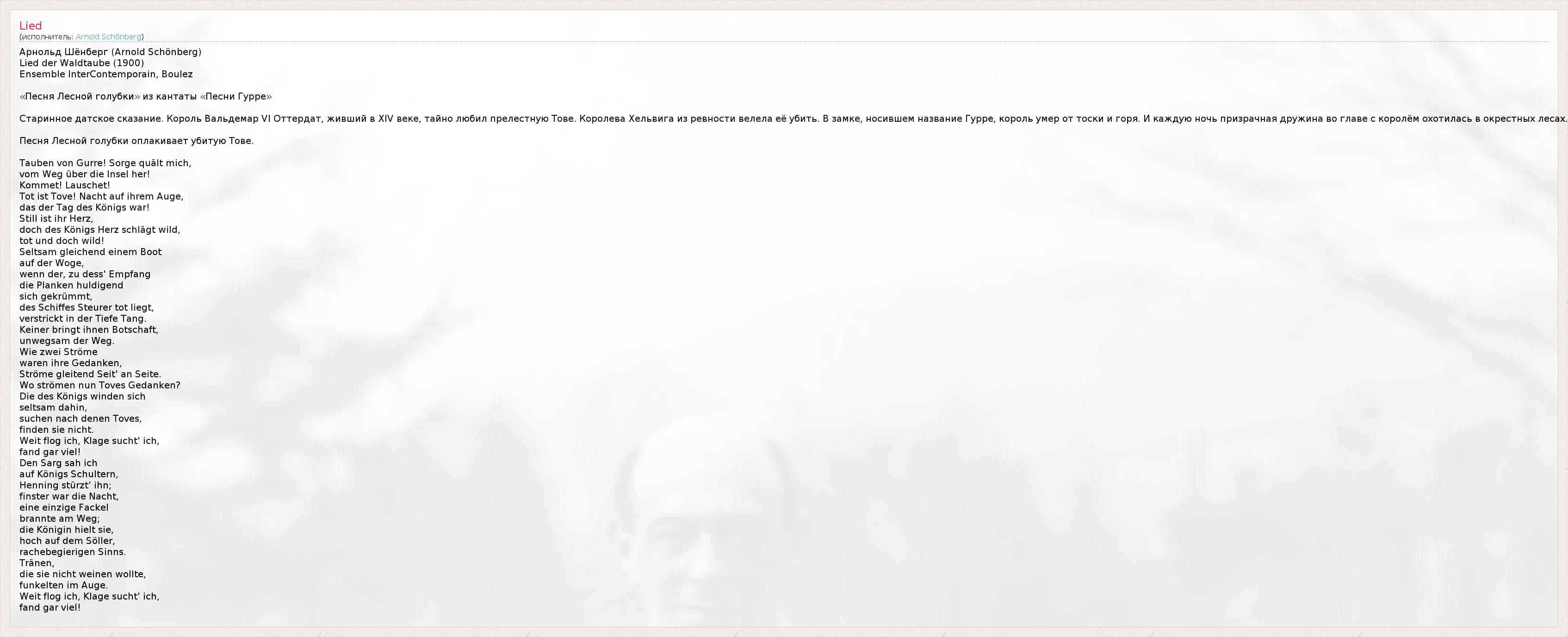 «Песня Лесной голубки» из кантаты «Песни Гурре»