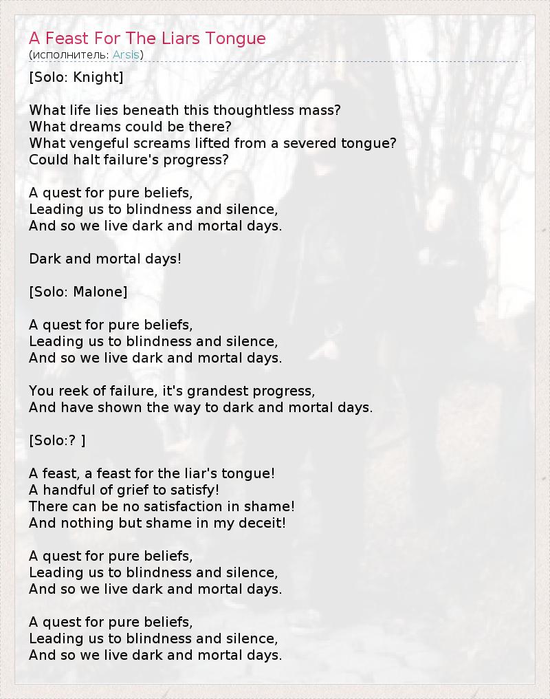 А как ты думаешь, о чем песня "A Feast For The Liars Tongue" ?