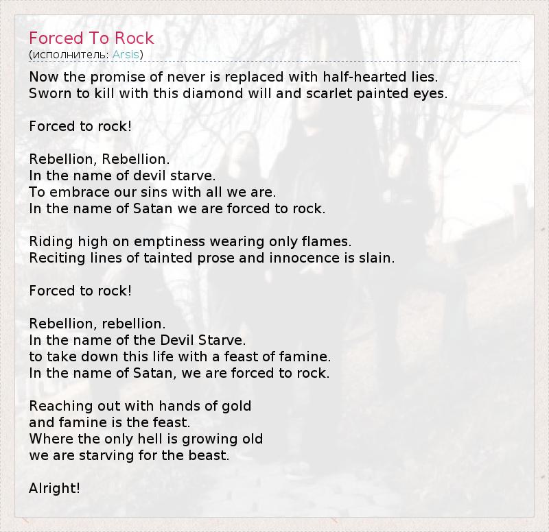 А как ты думаешь, о чем песня "Forced To Rock" ?