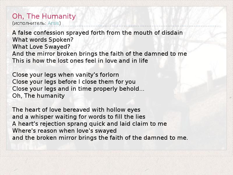 А как ты думаешь, о чем песня "Oh, The Humanity" ?