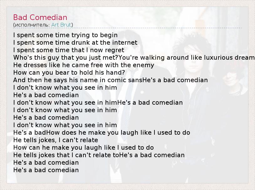 А как ты думаешь, о чем песня "Bad Comedian" ?