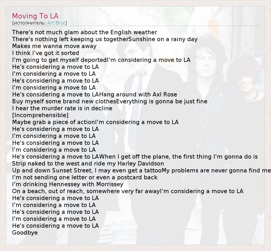 А как ты думаешь, о чем песня "Moving To LA" ?