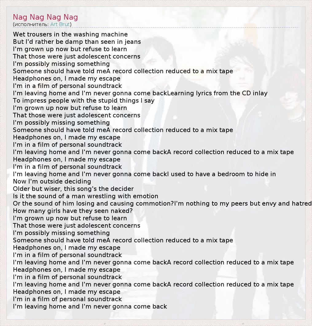 А как ты думаешь, о чем песня "Nag Nag Nag Nag" ?