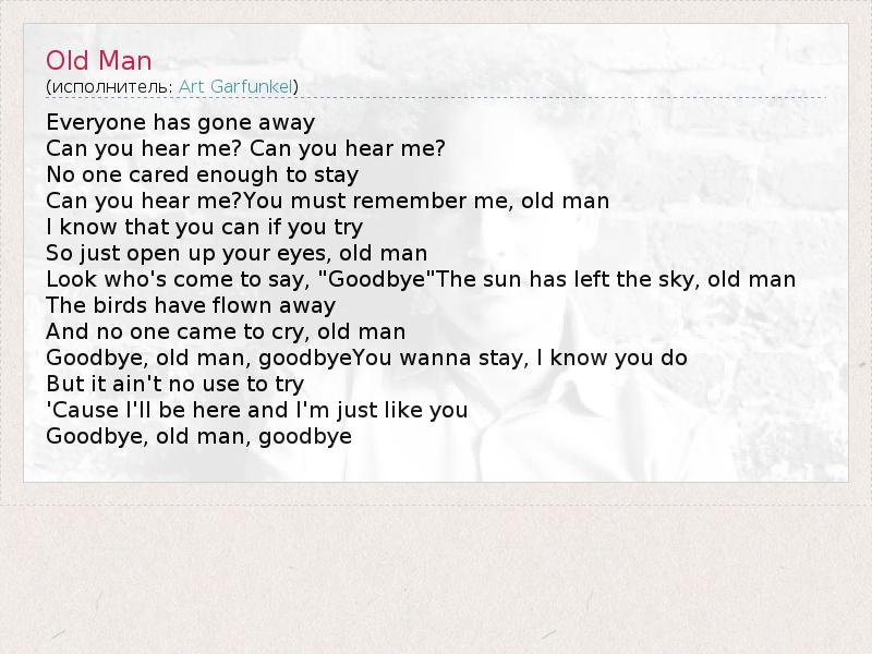 А как ты думаешь, о чем песня "Old Man" ?