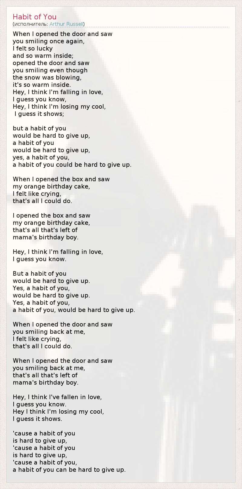 А как ты думаешь, о чем песня "Habit of You" ?