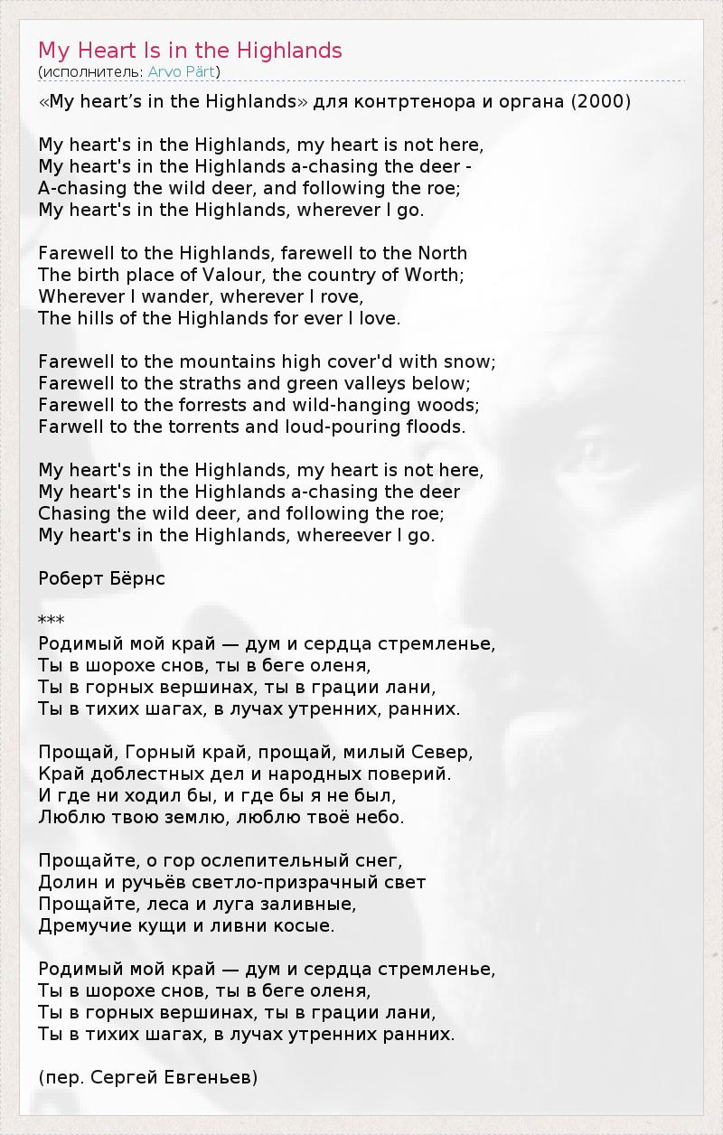 А как ты думаешь, о чем песня "My Heart Is in the Highlands" ?