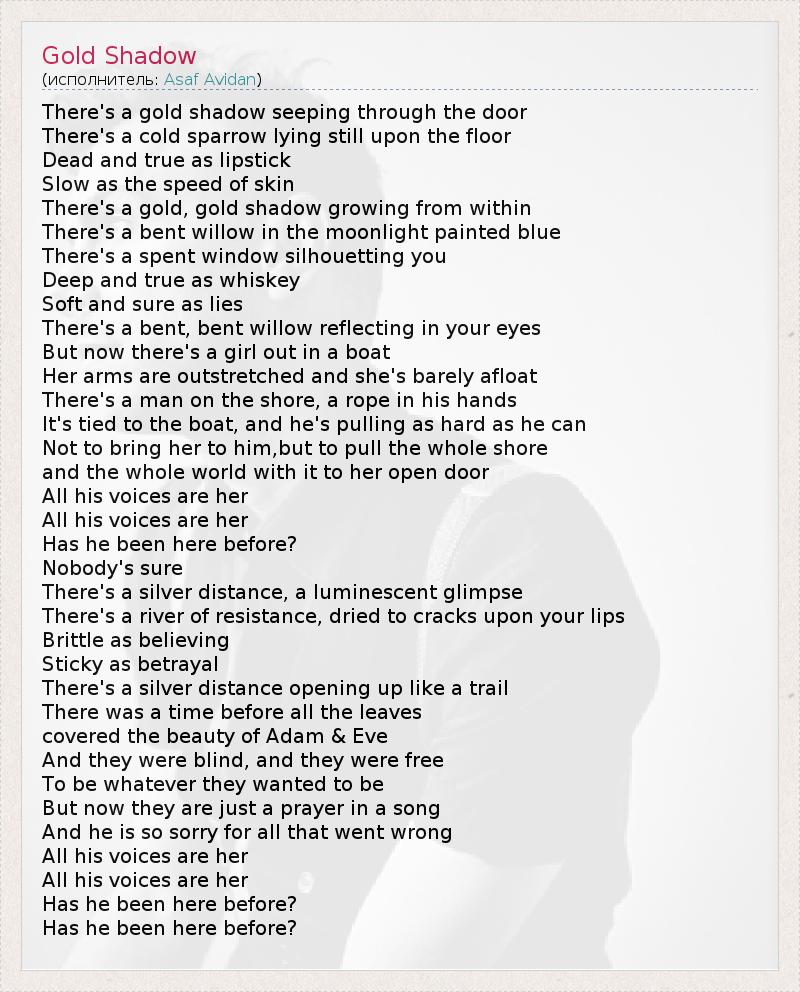 А как ты думаешь, о чем песня "Gold Shadow" ?